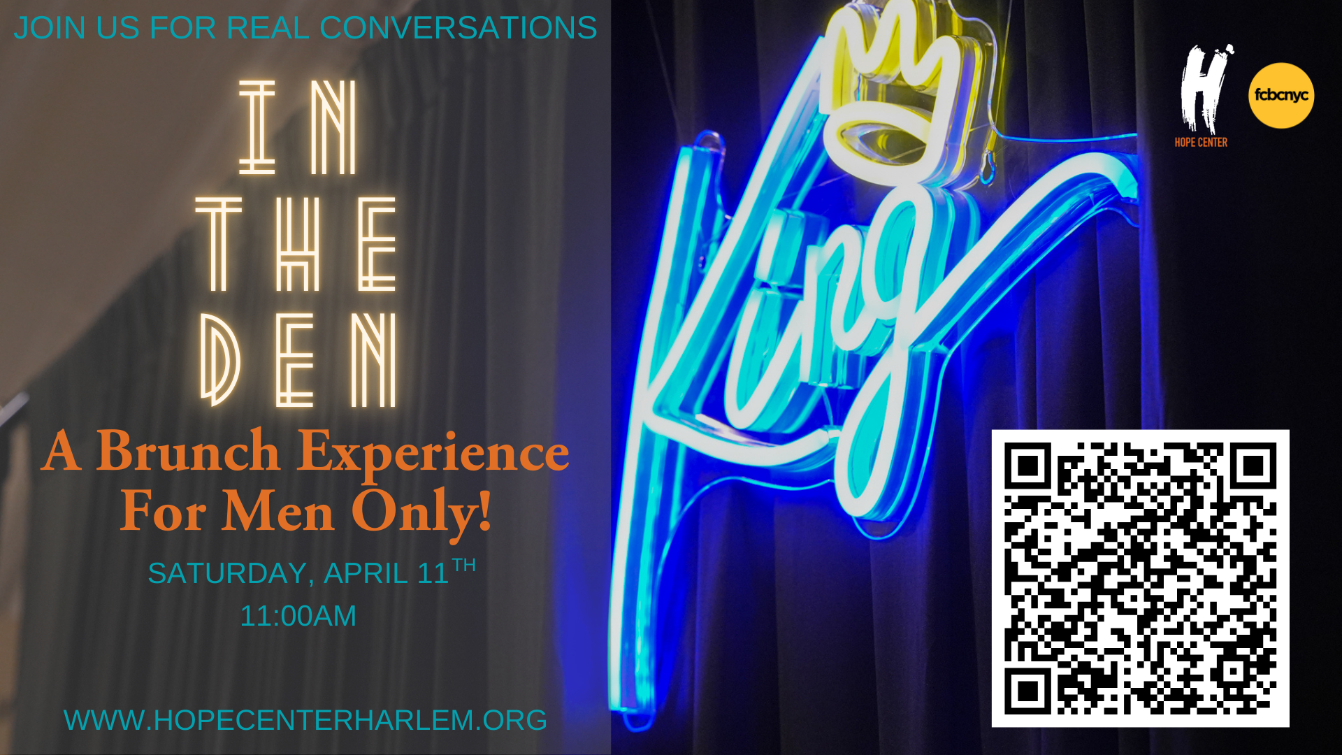 Brothers! This is for you. Join the HOPE Center on Saturday, April 11th for In The Den: The King's Table Brunch Experience. Come out and enjoy food, fellowship, and great conversation. Doors open at 11AM. Registration is required. |